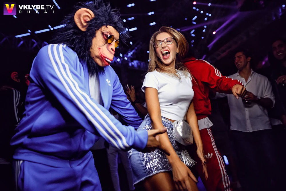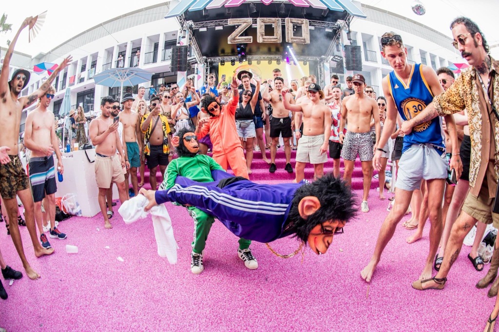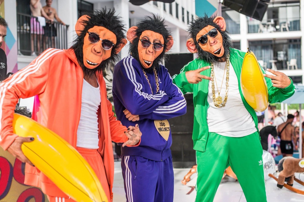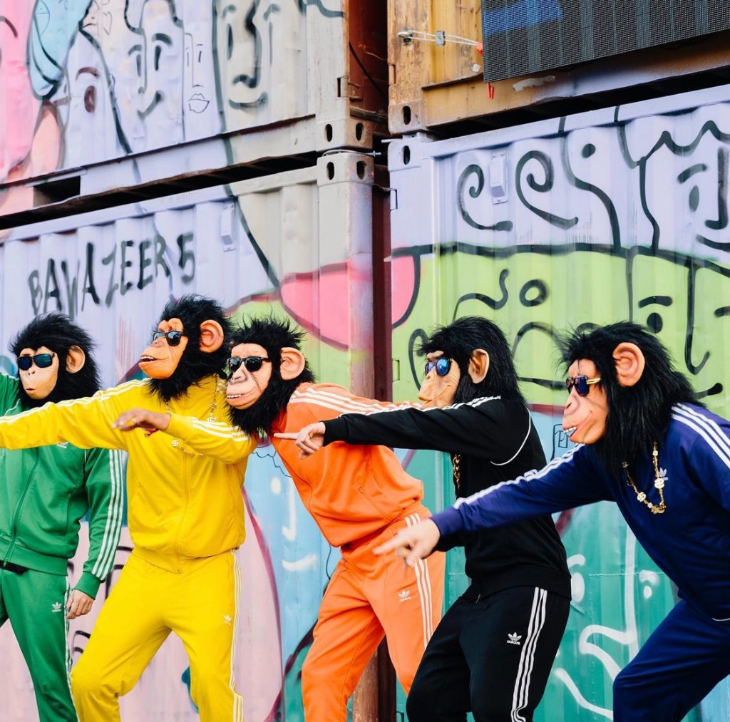 High-energy breakdancing monkeys bringing an urban jungle vibe to the party.