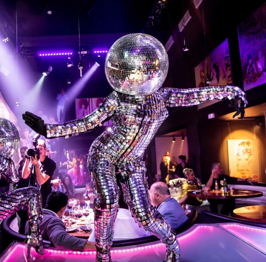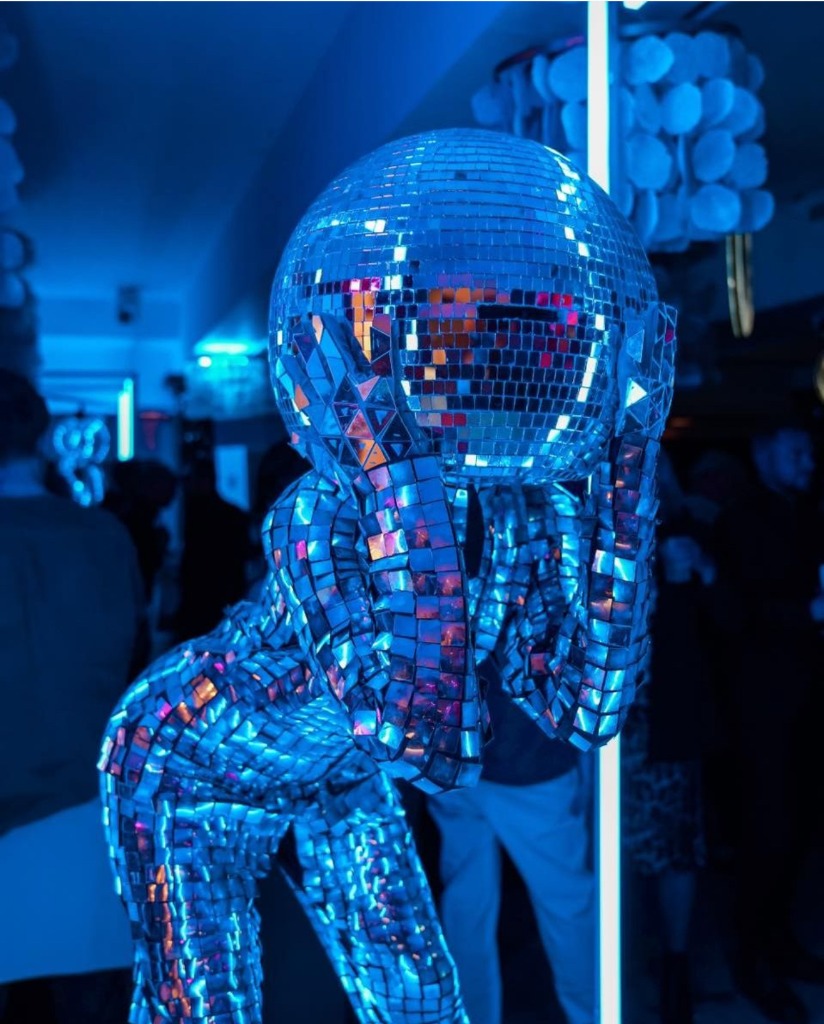 Our Disco Ball Heads are high-impact party starters. Featuring perfectly spherical, multi-faceted mirrored headpieces, they capture and amplify every light source in the venue. They are the ultimate connection between high-fashion roaming and high-energy nightlife entertainment.