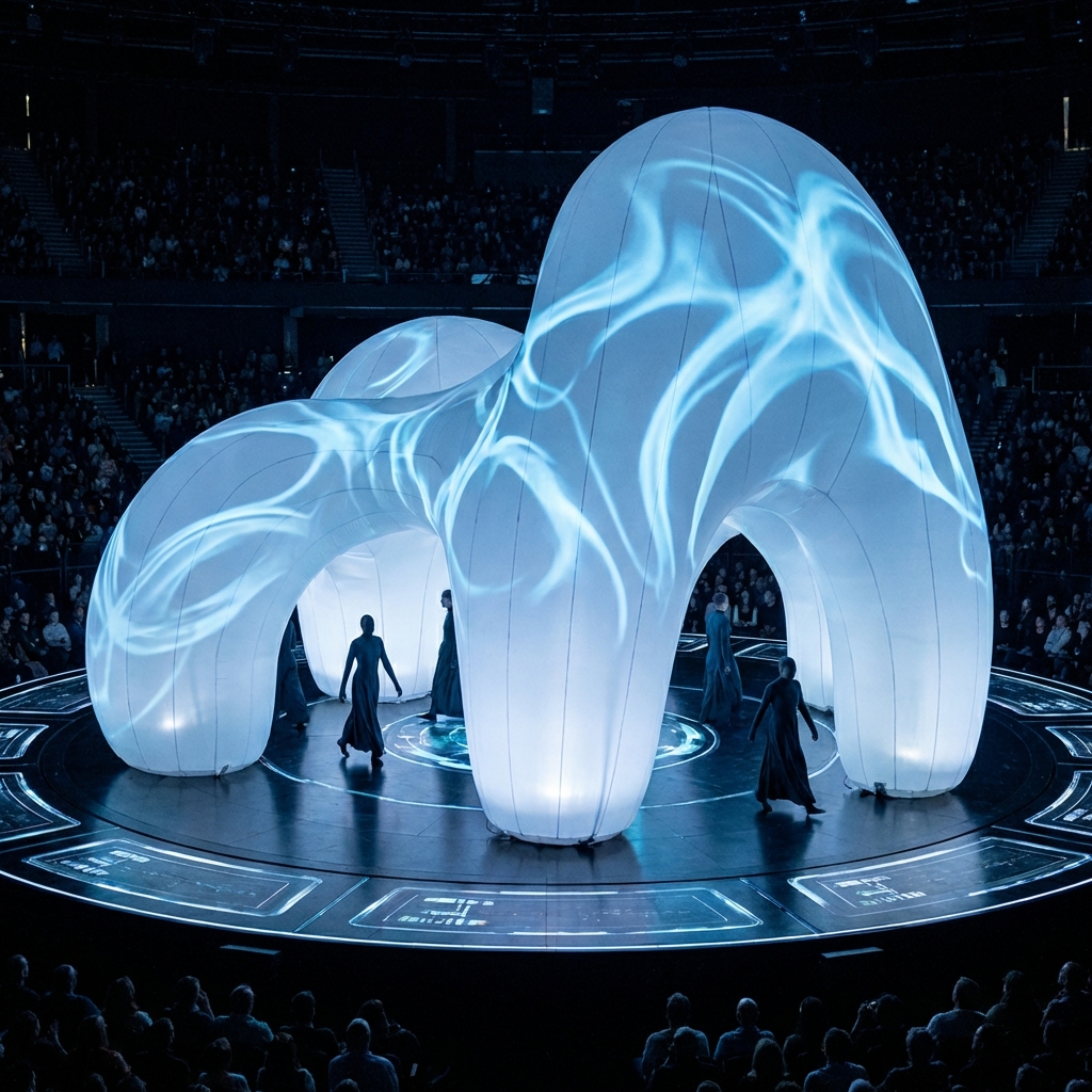 Our organic inflatables are moving sculptures. These costumes use internal air systems to expand and contract, creating a biological, breathing presence. They are surreal, massive, and incredibly lightweight, allowing for a level of scale and movement that traditional costumes cannot achieve.