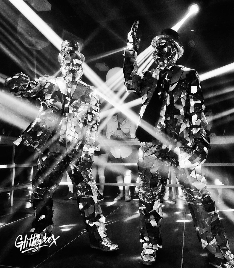 Hundreds of geometric mirror shards combined with precision choreography. Designed to bounce light beams across the venue.