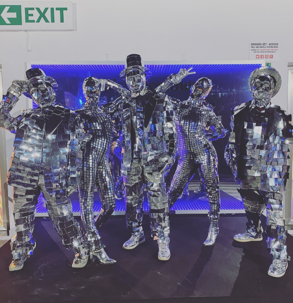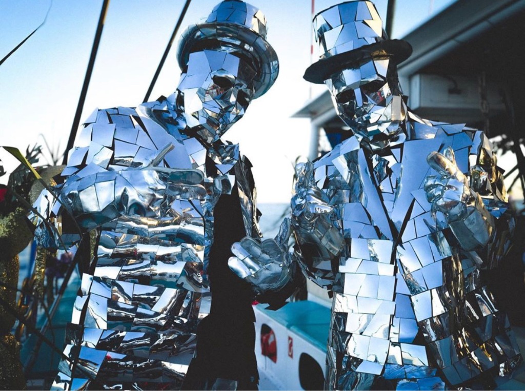 The Mirror Family represents the pinnacle of luxury entertainment. Their suits consist of over 2,000 hand-cut geometric mirrors that capture and fracture every light beam in the room. This creates a mesmerizing 'moving disco ball' effect that transforms even the most static environment into a dynamic light show. Ideal for premium weddings, gala dinners, and high-end fashion shows, they provide a sophisticated, walking art installation that leaves guests in awe.