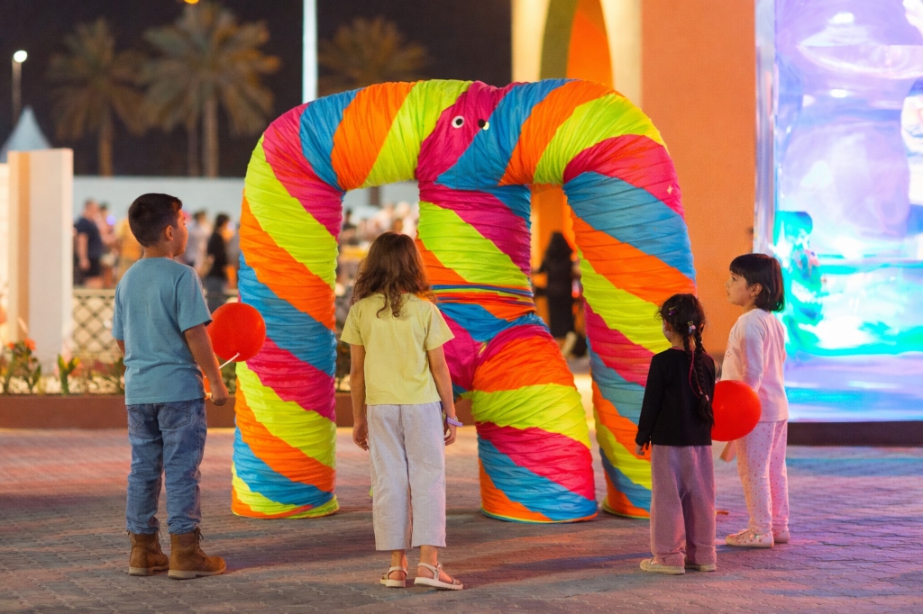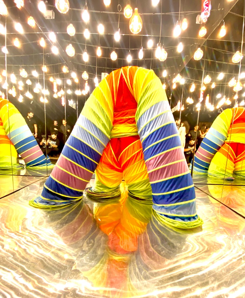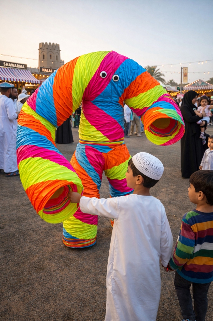 A surreal, gravity-defying creature that stretches and coils through the environment.